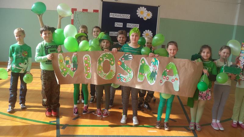 Także pierwszy dzień wiosny pełen był zabaw, konkurencji i zawodów sportowych. Na międzyklasowym turnieju sportowym nie zapomniano o promocji zdrowego odżywiania reklamując zielone, jak wiosna, warzywa i owoce. Truskolandia uczestniczyła też w Gminnym Konkursie-Zostań Eko Mistrzem. Konkurs ten zorganizowała nasza szkoła, a zespół z klasy III a uświetnił go występami i zrobił wody smakowe dla uczestników turnieju. Dzieci promowały też grę ruchową”Kto szybciej”zapraszając do wspólnej zabawy klasę II i rozdając ulotki z zasadami gry nauczycielom i uczniom naszej szkoły.