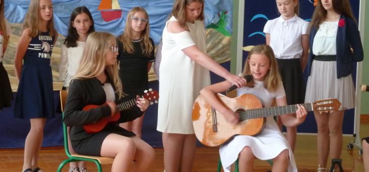 Harcerze szkoły podstawowej przygotowali akademię z okazji zakończenia roku szkolnego. Były piosenki, scenka rodzajowa o szkolnych aniołach. Z instrumentami zaprezentowali się: Weronika Szelc - instrumenty klawiszowe i ukulele, Alicja Mercik, gitara klasyczna, Aleksandra Babczyńska - tamburino. W występ włączyły się uczennice klasy 3.