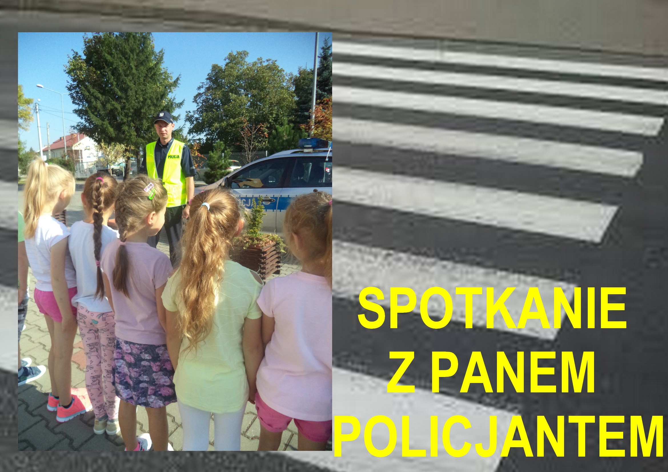 20 września 2018 roku klasy I i II oraz dzieci z przedszkola spotkały się z panami policjantami. Celem spotkania było poznanie zasad bezpieczeństwa. Panowie wyjaśniali jak należy się zachować w kontaktach z obcymi i jak dbać o bezpieczeństwo w sieci. Uczniowie klas młodszych, pod czujnym okiem stróżów prawa, utrwalali zasady bezpiecznego poruszania się po drogach, przechodząc na drugą stronę jezdni. Dzieci obejrzały też krótkie, dydaktyczne filmy o bezpieczeństwie.