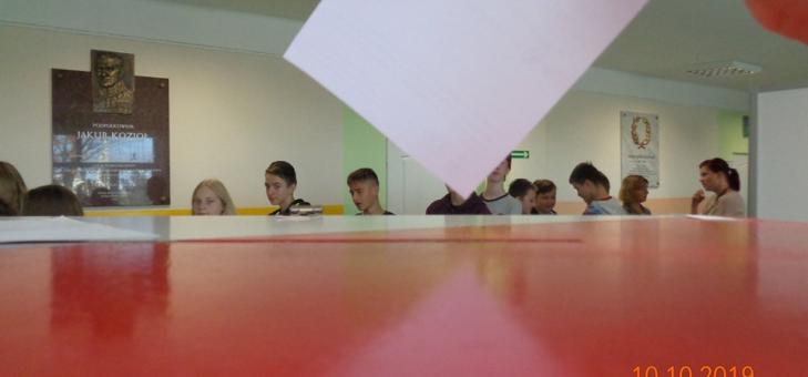 Już od kilku dni grupa projektowa złożona z uczniów klasy VIII intensywnie pracowała przygotowując Szkolne Wybory Parlamentarne: ustalono skład Komisji Wyborczych, przygotowano karty do głosowania, listy uprawnionych do głosowania, wykonano tematyczną gazetkę, przygotowano lokal wyborczy, a w nim miejsce pracy Komisji, zaplombowaną urnę wyborczą, katary, gdzie wyborcy mogli oddać swój głos- wszystko zgodnie z procedurami.