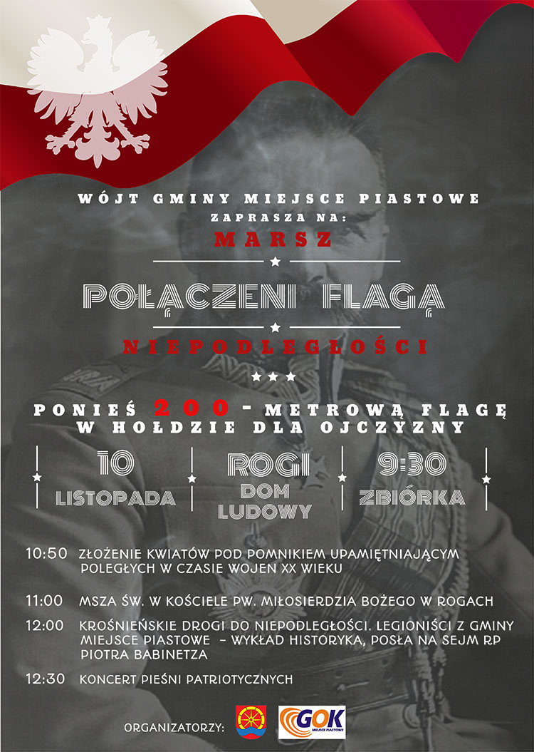 Zapraszamy wszystkich do wspólnego niesienia 200-metrowej flagi podczas I Marszu Niepodległości Połączeni Flagą, który odbędzie się 10 listopada w Rogach. Zaproszenie.