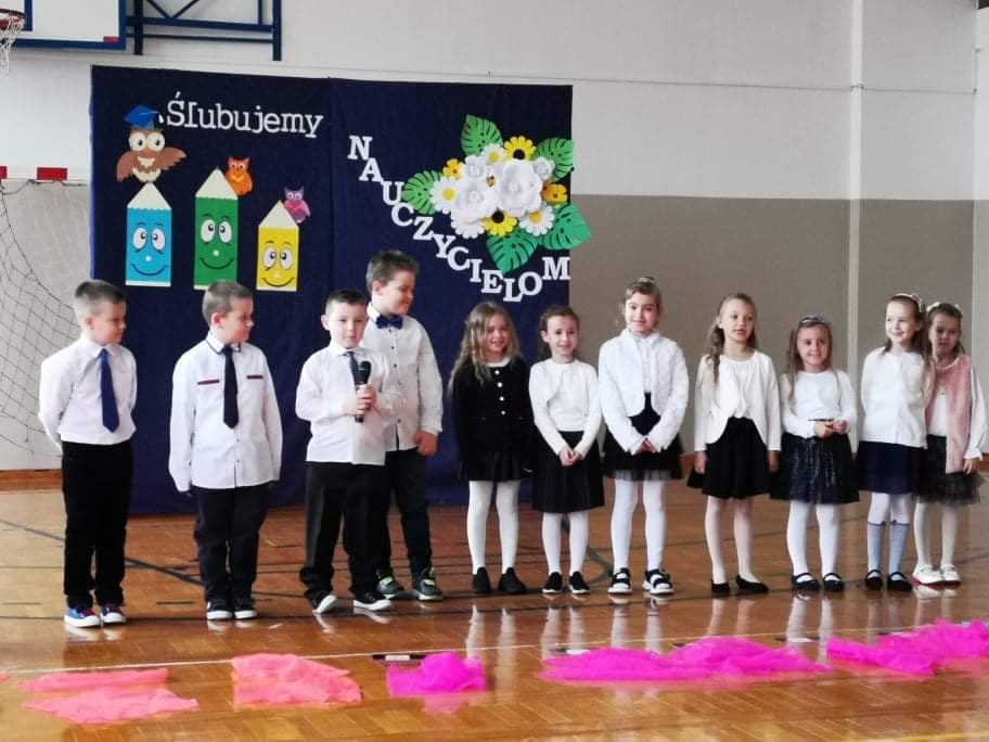 14 października 2021 r. w naszej szkole odbyła się wspaniała uroczystość – ślubowanie i pasowanie uczniów klas pierwszych. To bardzo ważne wydarzenie w naszym szkolnym kalendarzu imprez. Odświętnie ubrani pierwszoklasiści z radością w sercach i z wielkim zaangażowaniem recytowali wiersze i śpiewali piosenki. Zaprezentowali też wiedzę i umiejętności, które zdobyli w pierwszym miesiącu nauki w szkole. W pięknym występie wspierali ich też uczniowie z kółka teatralnego z klasy III i uczniowie klasy IV. Następnie uczniowie klasy I złożyli uroczyste przyrzeczenie na sztandar szkoły. Ślubowali być dobrymi uczniami i Polakami, godnie reprezentować swoją szkołę i klasę, zachowaniem i nauką sprawiać radość rodzicom i nauczycielom. Po ślubowaniu, aktu pasowania na ucznia Szkoły Podstawowej im. Tadeusza Kościuszki w Łężanach dokonała pani dyrektor szkoły Teresa Zamorska. Podczas ceremonii najmłodsi uczniowie otrzymali legitymacje szkolne, medale, pamiątkowe dyplomy oraz róg obfitości. Ten dzień z pewnością pozostanie na długo w pamięci wszystkich pierwszoklasistów. Na zakończenie uroczystości Rodzice z Rady Rodziców złożyli życzenia Pani Dyrektor i nauczycielom.