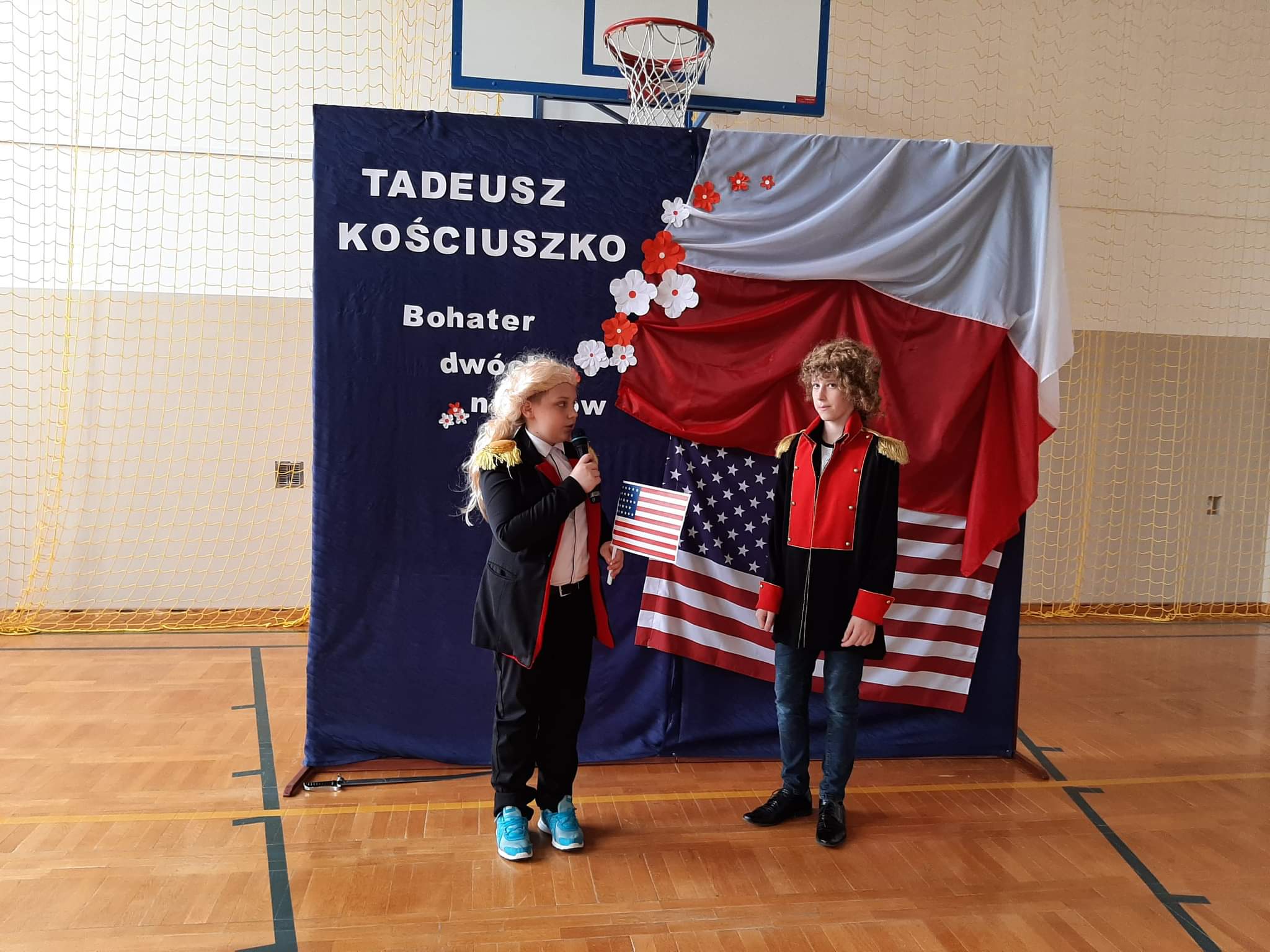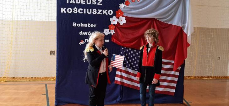 6 maja obchodziliśmy w naszej szkole Dzień Patrona. Z tej okazji klasa piąta pod okiem wychowawczyni p. Kamili Janik przygotowała uroczystą akademię upamiętniającą życie patrona naszej szkoły, Tadeusza Kościuszki. Uczniowie wcielili się w postaci, które przybliżyły nam czasy, w których Tadeusz żył jako dziecko, młody chłopak oraz dorosły bohater.