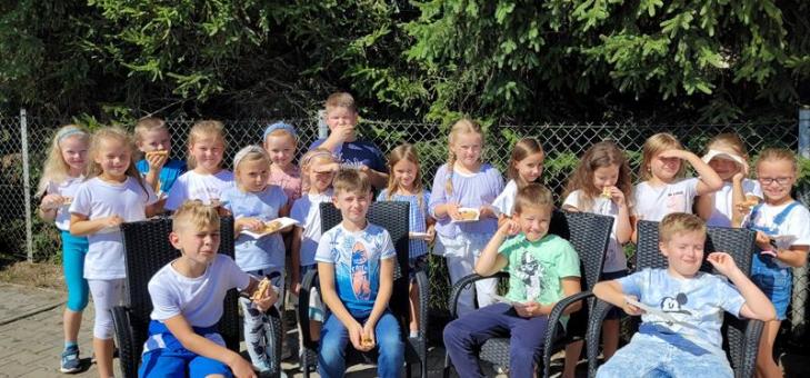 Dzisiaj ze świetlicy wybraliśmy się do pobliskiej lodziarni na gofry. Przy okazji dowiedzieliśmy się, że gofry pochodzą z Belgii. Chcieliśmy dowiedzieć się coś więcej o tym kraju. Wielu z nas nie wiedziało, że Belgia to też kraj, z którego pochodzą Smerfy. Wymyślił je belgijski rysownik Peyo. Nie zabrakło też w tym dniu smerfnych zabaw na świeżym powietrzu, a specjalnie na tę okazję obowiązywał niebiesko-biały strój.