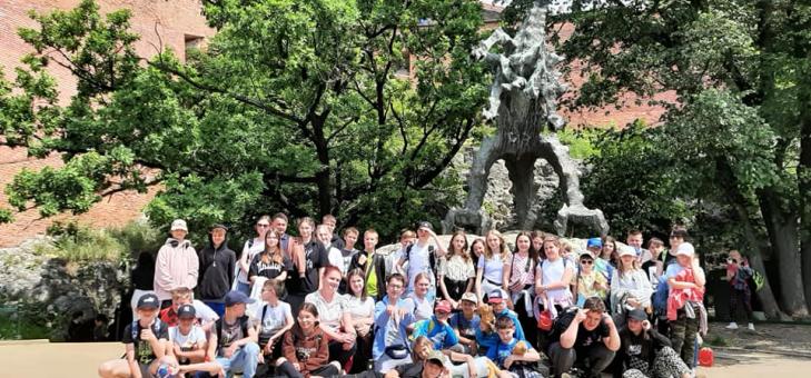 Uczniowie klas IV – VI podczas wycieczki szkolnej, która odbyła się 30.05.2023r. zwiedzali zabytki Krakowa: Rynek Główny, Sukiennice, Barbakan, Pomnik Mickiewicza, Kościół Mariacki, a następnie przeszli Drogą Królewską w stronę Wawelu. Atrakcją było wejście do Smoczej Jamy – jaskini krasowej i podziwianie rzeźby Smoka Wawelskiego. Następnym punktem wycieczki był Ogród Doświadczeń im. Stanisława Lema w Kra-kowie, gdzie uczniowie uczestniczyli w warsztatach: „Mroźne eksperymenty” podczas, któ-rych mieli okazję zobaczyć doświadczenia wykonywane w oparciu o mroźne substancje – suchy lód i ciekły azot. Uczestnicy zajęć mogli poznać właściwości tych substancji i zoba-czyć, jak reagują w kontakcie z innymi przedmiotami oraz, co stanie się, jeśli dodamy do nich gorącej wody. Później uczniowie mieli możliwość eksperymentowania w parku eduka-cyjnym na instalacjach doświadczalnych w ogrodzie oraz bawili się na placu zabaw. Kolejną atrakcją był laserowy Paintball, który sprawił dzieciom wiele radości. Uczestnicy wycieczki powrócili do domów pełni wrażeń. Beata Ziemba