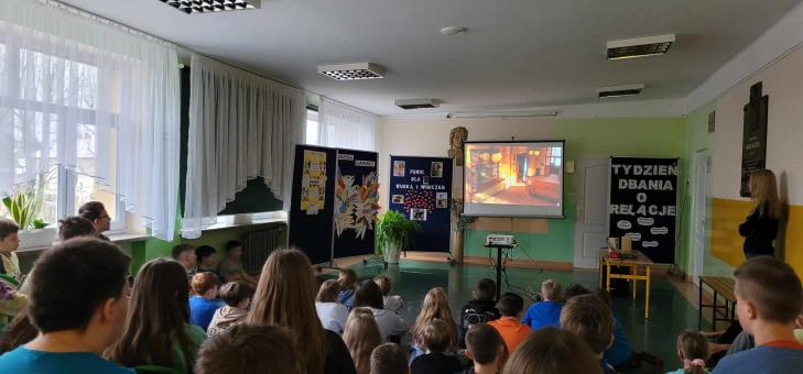 W dniach 20-24 listopada 2023 r. w naszej szkole odbył się Tydzień Dbania o Relacje. O relacje dbamy każdego dnia, jednak w tym tygodniu szczególnie zwracaliśmy na nie uwagę. W poniedziałek klasa II podzieliła się dobrymi słowami ze wszystkimi przedszkolakami, uczniami, nauczycielami i pracownikami obsługi. Uśmiech gościł na ustach każdego, kto wylosował karteczkę, a kolor żółty uznawany za kolor życzliwości, królował w naszej szkole. We wtorek powstawały plakaty o niezwyczajnych i niezwykłych powitaniach, które przygotowała klasa III. Starsze klasy natomiast tworzyły fotobudki, w których wszyscy chętnie robili sobie zdjęcia, a najbardziej przypadły do gustu przedszkolakom. W międzyczasie codziennie na korytarzu obywał się maraton gier planszowych, a na długich przerwach była tańczona Belgijka. Ważnym wydarzeniem były obchody Dnia Praw Dziecka, w których brały udział nawet przedszkolaki. Uczniowie rozmawiali także o tolerancji, a krótkie filmiki wywołały dużo emocji i były początkiem interesujących dyskusji. Wszystkie klasy zadbały również o zajęcia integracyjne w różnych formach. Były to m.in. wycieczka do Kopytowej do Muzeum Kultury Szlacheckiej, gdzie najmłodsi piekli pierniczki, wspólne pieczenie pizzy, a także wycieczka na lodowisko do Sanoka. Prawie wszystkie klasy zrobiły swoją Skrzynkę Pozdrowień, gdzie każdy mógł napisać coś miłego dla innych osób, a później wiele radości sprawiało odczytywanie tych ciepłych słów. To był bardzo miły i owocny w dobre relacje tydzień i będziemy powtarzać go częściej!