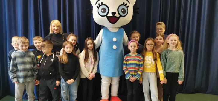 Uczniowie klas I-III oraz dzieci z oddziałów przedszkolnych uczestniczyły w spotkaniu z panią Beatą Krawiec, która - wykorzystując "Książkę bez obrazków" - w artystyczny sposób przedstawiła, czym jest aktywne czytanie i słuchanie, jak działa nasza wyobraźnia i dlaczego warto czytać. Spotkanie połączone było z realizacją teatrzyku "Czerwony Kapturek", w którym aktorami były dzieci. Największą radość sprawiło wszystkim spotkanie z Kicią Kocią.