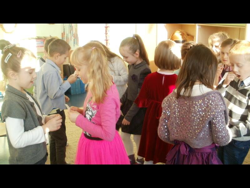 Klasa I przygotowywała się do świąt od dłuższego czasu. Uczniowie przyozdobili swoją klasę w świąteczne dekoracje, własnoręcznie wykonali ozdoby i ciekawe prace plastyczne o tematyce świątecznej, ubrali piękną choinkę. Po obejrzeniu przedstawień w wykonaniu członków kółka teatralnego klas IV-VI i I-III, uczniowie wraz ze swoją wychowawczynią zasiedli do klasowej wigilii. Wszyscy złożyli sobie świąteczne życzenia, połamali się opłatkiem, a później spożywali wigilijne potrawy. Następnie przyszedł czas na wspólne, głośne kolędowanie.