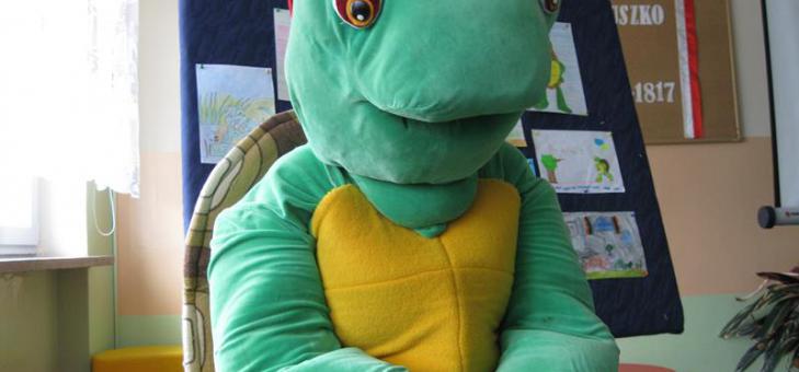15 marca w ramach realizacji projektu: "Nie jestem sam - książkę za przyjaciela mam!" w naszej szkole odbywały się zajęcia mające na celu rozbudzanie zainteresowań czytelniczych. Uczniowie mieli możliwość uczestniczyć w lekcji bibliotecznej dotyczącej budowy książki wzbogaconej o prezentację multimedialną i krótki film. Następnie odbywały się zajęcia w klasach, gdzie uczniowie wraz z wychowawcami przedstawiali swoje ulubione książki, głośno czytali wybrane fragmenty oraz mieli okazję wysłuchać prelekcji pani Agnieszki Holland. W tym samym czasie odbył się również turniej wiedzy o żółwiku Franklinie. Dzieci chętnie odpowiadały na pytania stawiane przez prowadzącego. I miejsce zdobyła uczennica klasy I - Emilia Zygmunt. Na zakończenie zajęć wszystkie klasy zgromadziły się na szkolnym korytarzu, by przywitać niezwykłego gościa - żółwika Franklina. Wszyscy bardzo lubimy sympatycznego żółwia Franklina, którego postać powstała w 1986 roku w Kanadzie. Stworzyły go autorka Paulette Bourgeois i ilustratorka Brenda Clark. Franklin w każdym tomiku książeczek przeżywa to co każde dziecko zna z doświadczenia. Nie są to fantastyczne, bajkowe przygody, lecz raczej codzienne rozterki, kłopoty, wielkie zmartwienia i jeszcze większe radości małego człowieka. Postać Franklina nie jest jednak idealna – ma mnóstwo wad, dlatego dzieciom łatwiej jest się z nim identyfikować. Mały bohater uczy już od najmłodszych lat rozwiązywać własne problemy, bawi, rozśmiesza, uczy używania ,,czarodziejskich słów”, a także pokazuje jak ważne miejsce w życiu każdego człowieka – małego i dużego – zajmują rodzice. Z książeczek dzieci mogą się wiele nauczyć. Franklin po przywitaniu się z uczniami wysłuchał kilku zagadek i ciekawostek o żółwiach, a następnie wręczył nagrody za konkurs plastyczny (I miejsce - Emilia Zygmunt klasa I) o Franklinie i turniej wiedzy. Gdy już wszystkie dzieci otrzymały nagrody przystąpiono do pamiątkowych zdjęć, do których Franklin pozował bardzo chętnie.
