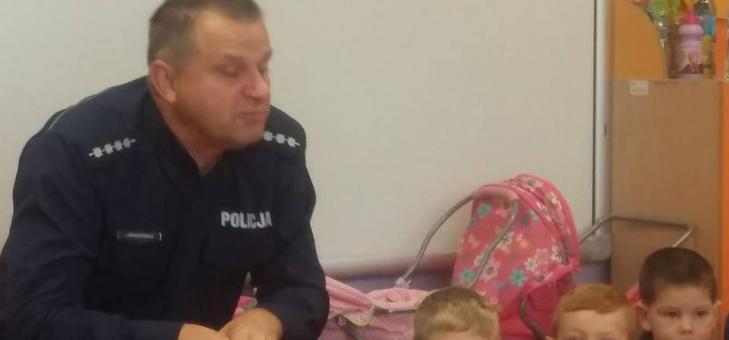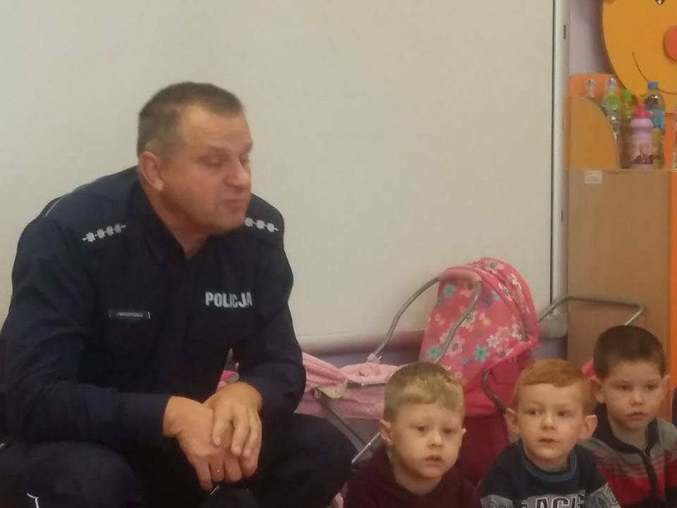 Jak co roku we wrześniu przedszkolaki spotkały się z panem policjantem. Spotkanie to było okazją do utrwalenia podstawowych przepisów ruchu drogowego, a zwłaszcza bezpieczeństwu dzieci w drodze do i z przedszkola.