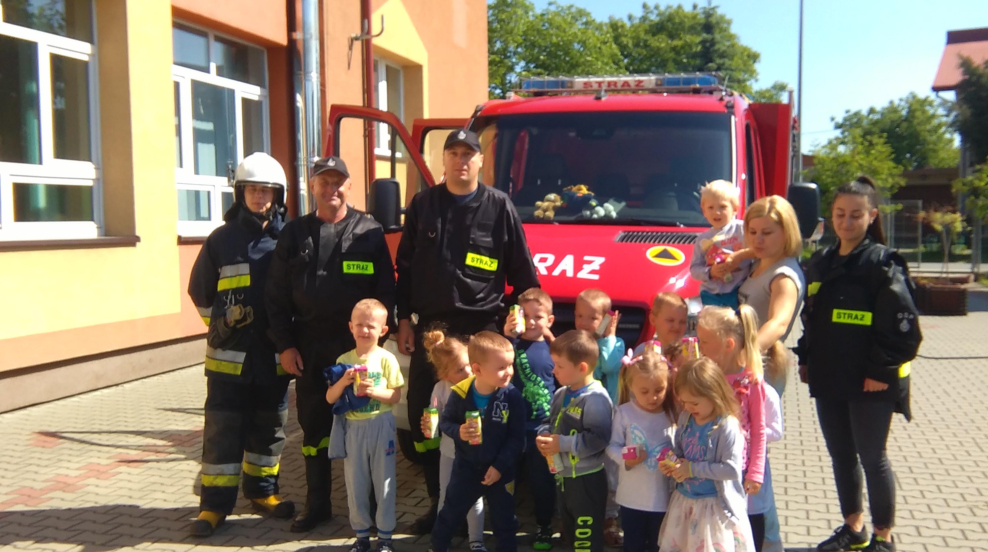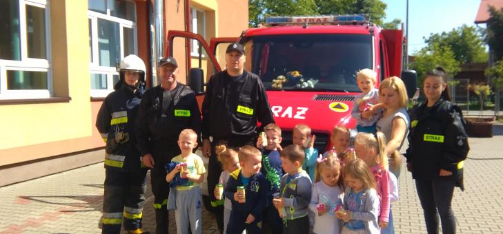 21 maja nasze przedszkole odwiedzili niezwykli goście- strażacy z Ochotniczej Straży Pożarnej w Łężanach. Zajechali pod szkołę nowym wozem i zaprezentowali dzieciom jego wyposażenie. Opowiedzieli również o swojej ciężkiej pracy i niebezpieczeństwach z nią związanych. Później każdy przedszkolak mógł wcielić się w rolę strażaka i lać wodą z węża strażackiego. Na koniec były pamiątkowe zdjęcia. Bardzo dziękujemy strażakom za spotkanie!
