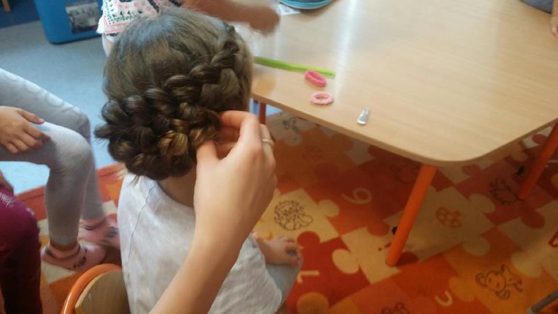 Dnia 14 czerwca 2018 roku zorganizowano w przedszkolu spotkanie z pracownikiem salonu fryzjerskiego. Pani fryzjerka uczesała dziewczynki demonstrując przedszkolakom różne sposoby splotu warkoczy tworząc urozmaicone fryzury. Dzieci zachwycone pokazem dumnie prezentowały swoje uczesanie.