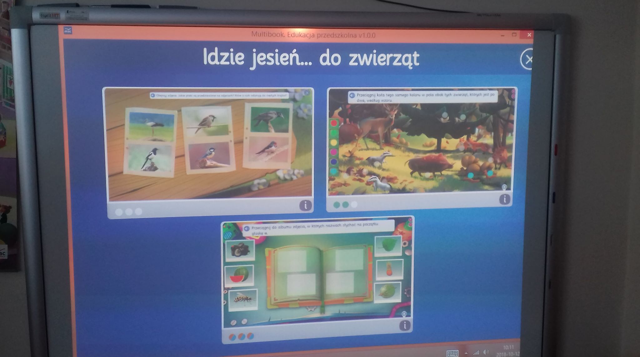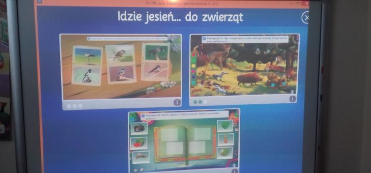 „Piękna nasza polska, złota jesień”- pod tym hasłem, metodą projektu odbywały się zajęcia w grupach dzieci 5 i 6- letnich. Podczas zajęć i zabaw dzieci różnymi zmysłami poznawały dary jesieni z sadu, pola, ogrodu i lasu. Obchodziły Dzień Drzewa, własnoręcznie przygotowywały sałatkę owocową i naturalne soki. W trakcie spacerów i wycieczek rozpoznawały i nazywały drzewa i krzewy, zbierały dary jesieni do kącika przyrody, wykonywały prace plastyczne i techniczne, uczyły się piosenek i zabaw ze śpiewem. Podsumowaniem projektu były zajęcia z wykorzystaniem tablicy interaktywnej, podczas których dzieci utrwalały zdobyte wiadomości i umiejętności, a także samodzielnie wykonywały zadania i ćwiczenia. Wszystkie dzieci wykazały się dużą aktywnością i zaangażowaniem!