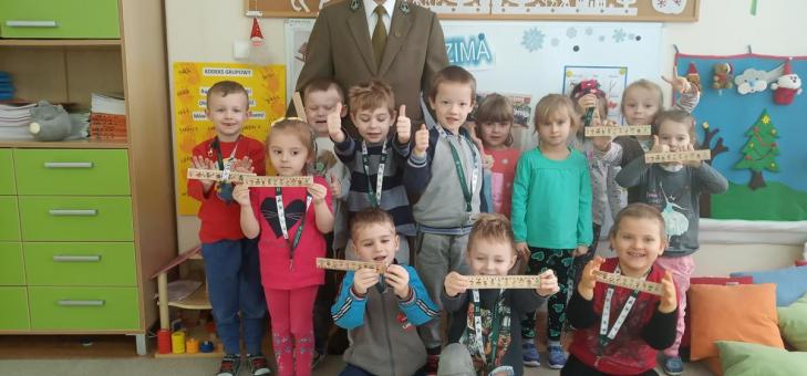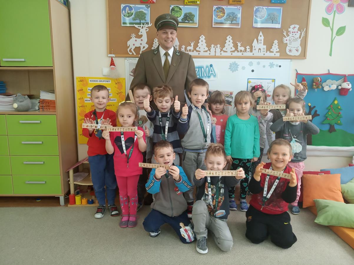 Niezwykły gość odwiedził dzisiaj (10.01.2019r.) przedszkolaki. Był nim leśnik, pan Tomasz Kałamarz, z Regionalnej Dyrekcji Lasów Państwowych w Krośnie.