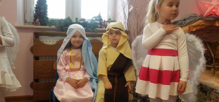 Dzień 19.12.2018 roku był dniem oczekiwanej Wigilii przedszkolnej. Spożywanie potraw poprzedził występ dzieci przebranych za aniołki ,pasterzy, królów i Świętą Rodzinę. Dzieci zaprezentowały dla małego Jezuska montaż słowno-muzyczny,, Do Betlejem’’.Po złożeniu życzeń wszyscy zasiedli do wigilijnego stołu i I ze smakiem spożywali wigilijne potrawy.