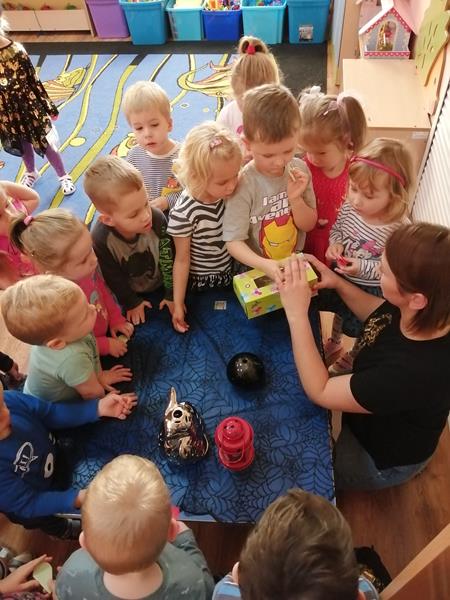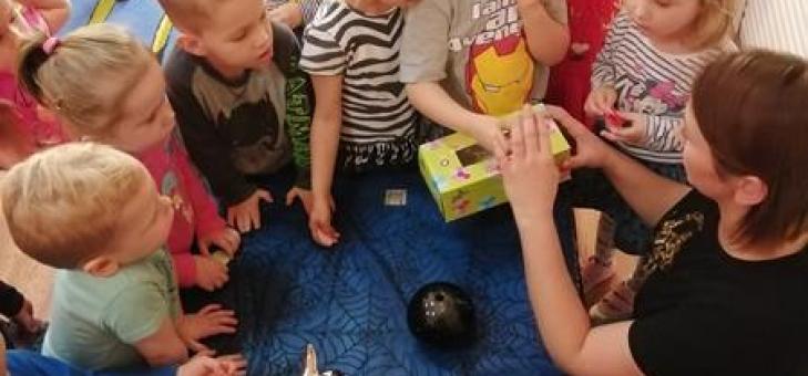 W dniu 29 listopada nasze Przedszkolaki przeniosły się w magiczny świat wróżb i zabaw andrzejkowych. Dużo radości przyniosła dzieciom wróżba najbardziej kojarzona z Andrzejkami – lanie wosku. Powstałe kształty były doskonałą okazją do rozwijania wyobraźni. Maluszki rzucały pieniążkami do miski z wodą, aby spełniły się ich najskrytsze marzenia. Losowały serduszka z imieniem najlepszego przyjaciela oraz kolorowe karteczki z przypisaną przepowiednią. Wśród atmosfery tańca i zabawy znalazł się również czas na słodki poczęstunek. Ten magiczny dzień był okazją do integracji grupy, radości oraz zapoznania się z tradycją andrzejkową.