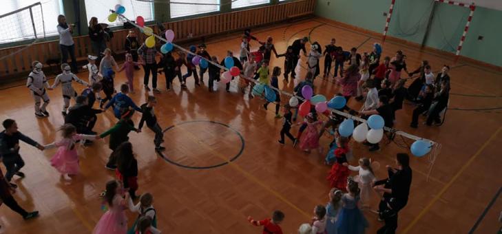 Karnawał to czas zimowych balów i zabaw. 13 lutego 2020 roku taki bal odbył się w naszej szkole. Sala gimnastyczna stała się na chwilę piękną, salą balową. Dzieci z klas I-III przyszły w pięknych i pomysłowych strojach. Przy błysku profesjonalnego oświetlenia i dźwiękach największych przebojów, prezentowanych przez DJ – wszyscy bawili się doskonale. Zabaw oraz tańców było bardzo wiele. W przerwie uczniowie udali się do swoich klas na poczęstunek. Wspólna zabawa przyniosła dzieciom wiele radości.