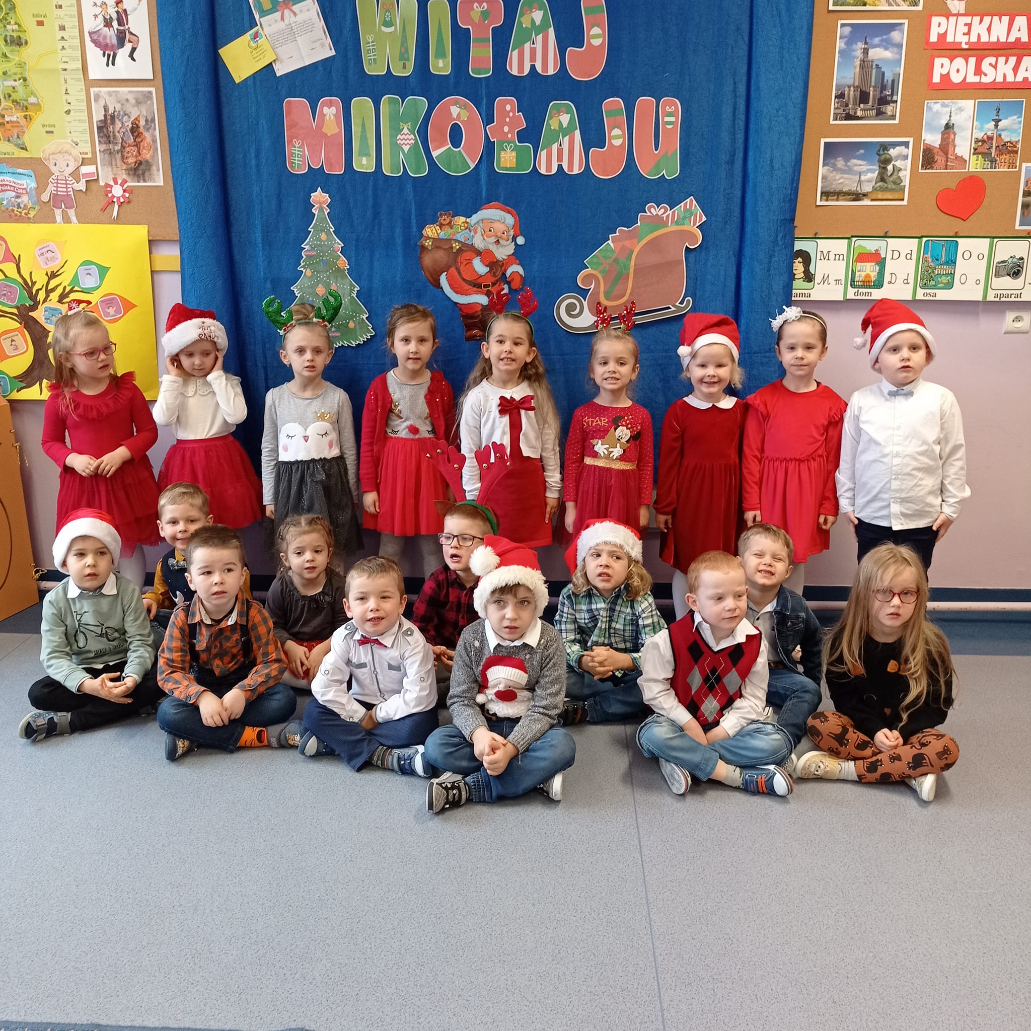 Czas magicznego oczekiwania na Święta Bożego Narodzenia trwa już w pełni. W przedszkolu ta wyjątkowa atmosfera została zapoczątkowana odwiedzinami Świętego Mikołaja. Wszystkie grupy przedszkolne gościły w swoich salach tego wyjątkowego przybysza z odległej, zimnej krainy. Dzieci przywitały go pięknymi wierszykami. Zaśpiewały również piosenki, do których Mikołaj wesoło przygrywał dzwoneczkiem. Po tradycyjnym okrzyku: ,,Ho, ho, ho – czy są tu jakieś grzeczne dzieci?” – na salach pojawił się las rąk. Mikołaj uznał, że wszyscy nasi podopieczni zasłużyli na wspaniałe prezenty. Przedszkolaki z radością odebrały swoje paczki i z uśmiechem na twarzy pozowały do zdjęć ze Świętym wśród pięknej, zimowej scenerii. Nie obeszło się również bez obietnic grzecznego zachowania przez cały kolejny rok. W końcu za rok spotkamy się znowu.