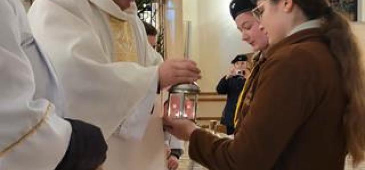 W przeddzień Wigilii Bożego Narodzenia, podczas uroczystej Mszy Świętej, Drużyna przekazała Betlejemskie Światło Pokoju do naszej Parafii.