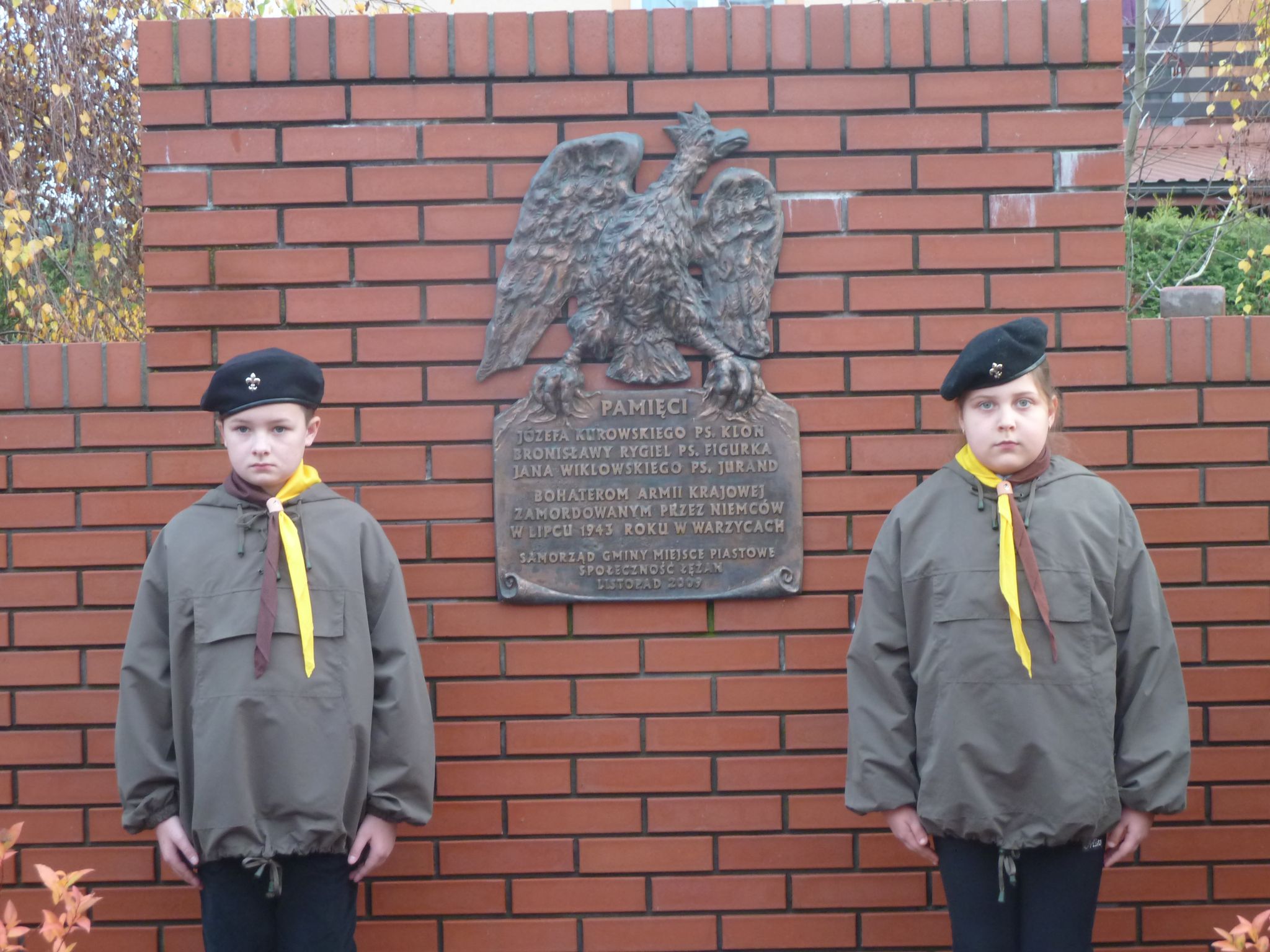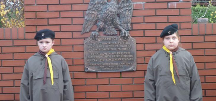 Warta harcerzy 18 Drużyny Harcerskiej im. S. Czarnieckiego w Święto Niepodległości przy pomniku poświęconym insurekcji kościuszkowskiej oraz pod tablicą ku czci łężańskich żołnierzy Armii Krajowej.
