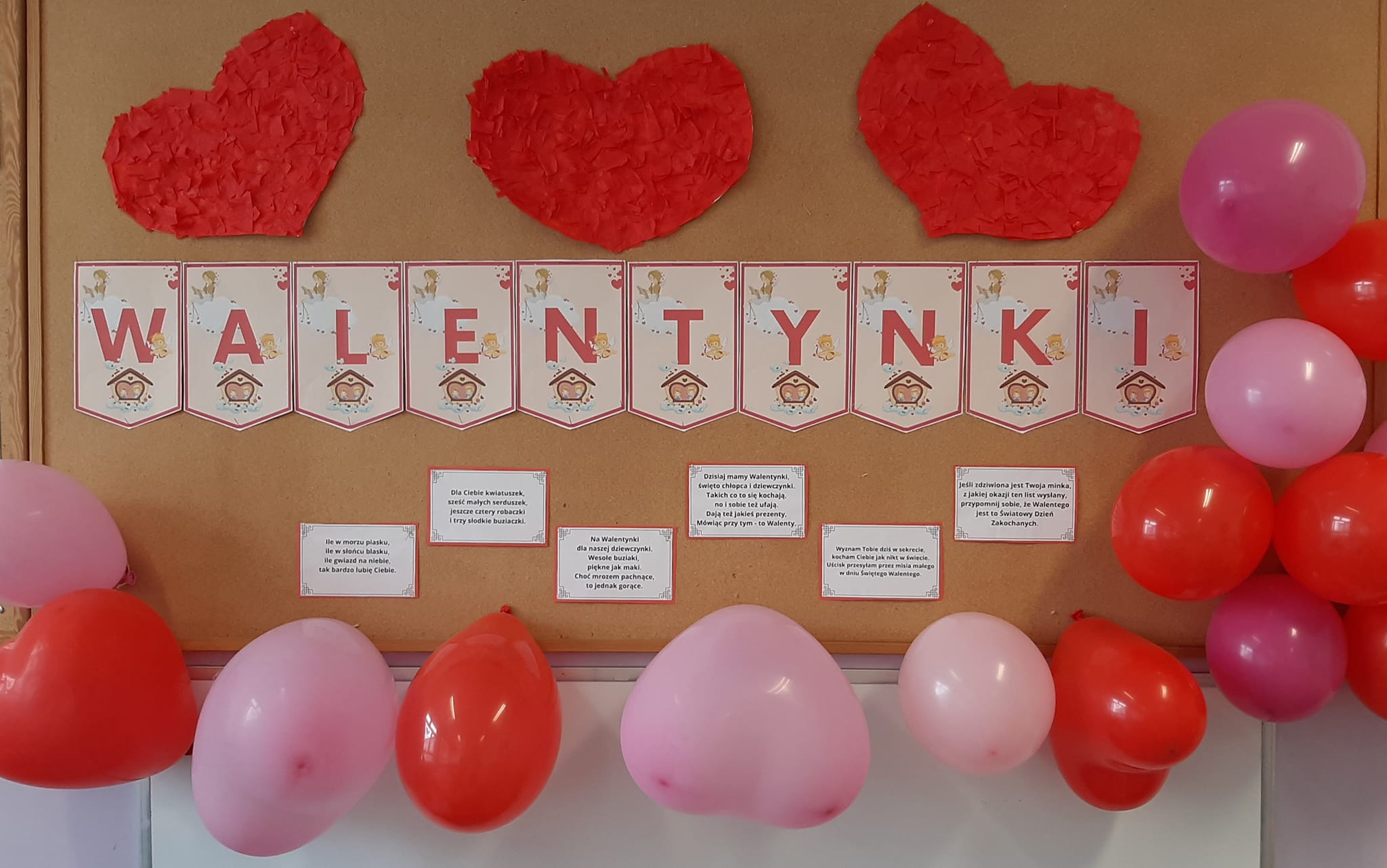 14 lutego 2023 roku był dla wszystkich przedszkolaków prawdziwym, czerwonym dniem miłości i przyjaźni. To nie tylko dzień zakochanych. Dzieci wzięły udział w różnych zabawach związanych z walentynkami m.in.: szukały drugiej połówki serca, rozwiązywały zagadki dotyczące bohaterów bajek, bawiły się zrobionymi przez siebie serduszkami opaskami. Nie zabrakło oczywiście sercowych kolorowanek, spontanicznych emocji oraz pozytywnych uczuć. Na koniec tego czerwonego dnia każde dziecko otrzymało walentynkę: pysznego lizaka i balonika od pań. Dzień Walentynowy z pewnością można zaliczyć do udanego. Był to dzień radości, życzliwości, szacunku i przyjaźni.