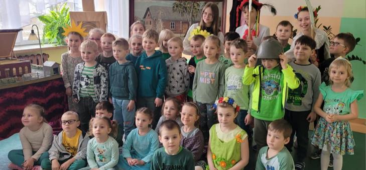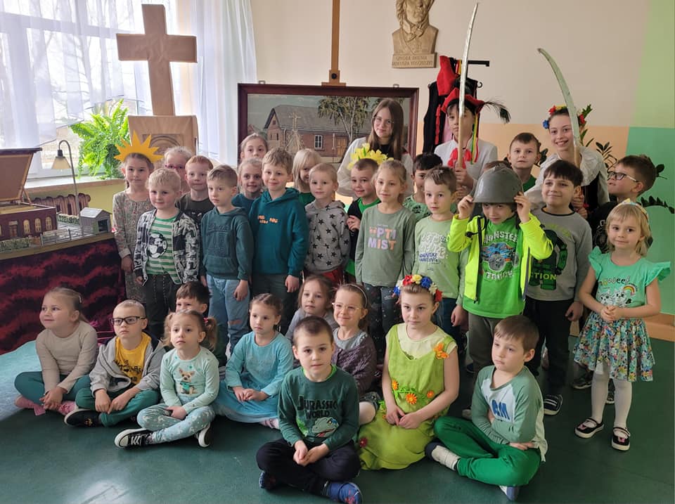 W ramach projektu „Kochamy nasze Łężany” dzieci z grup przedszkolnych zostały zaproszone przez uczniów klasy V na spotkanie z łężańskimi legendami. Obejrzały inscenizację trzech legend – o pochodzeniu nazwy Łężany, o zakopanych przez kosynierach kosach oraz o powstaniu straży pożarnej w Łężanach.