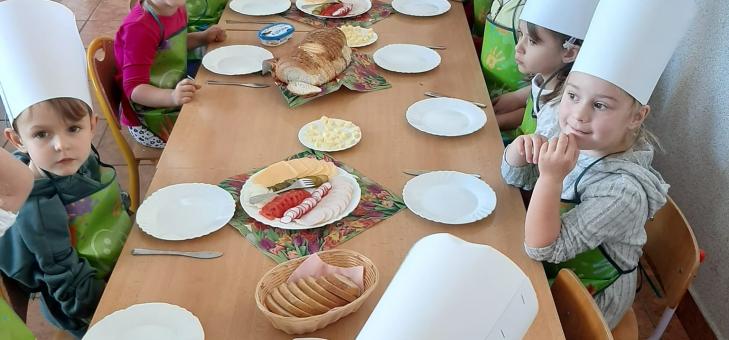Z okazji Światowego Dnia Chleba, przedszkolaki z grupy Średniaki, obejrzały film pt. "Od ziarenka do bochenka". Dowiedziały się jak przebiega proces powstawania chleba od momentu wysiewu ziarna do zakupu gotowego pieczywa w sklepie. Poznały rodzaje zbóż i chleba oraz jakich potrzebujemy składników do jego wypieku. Jednak dzieci, najbardziej cieszyły się z samodzielnego wykonania kanapek. Oczywiście smakowały im bardzo!