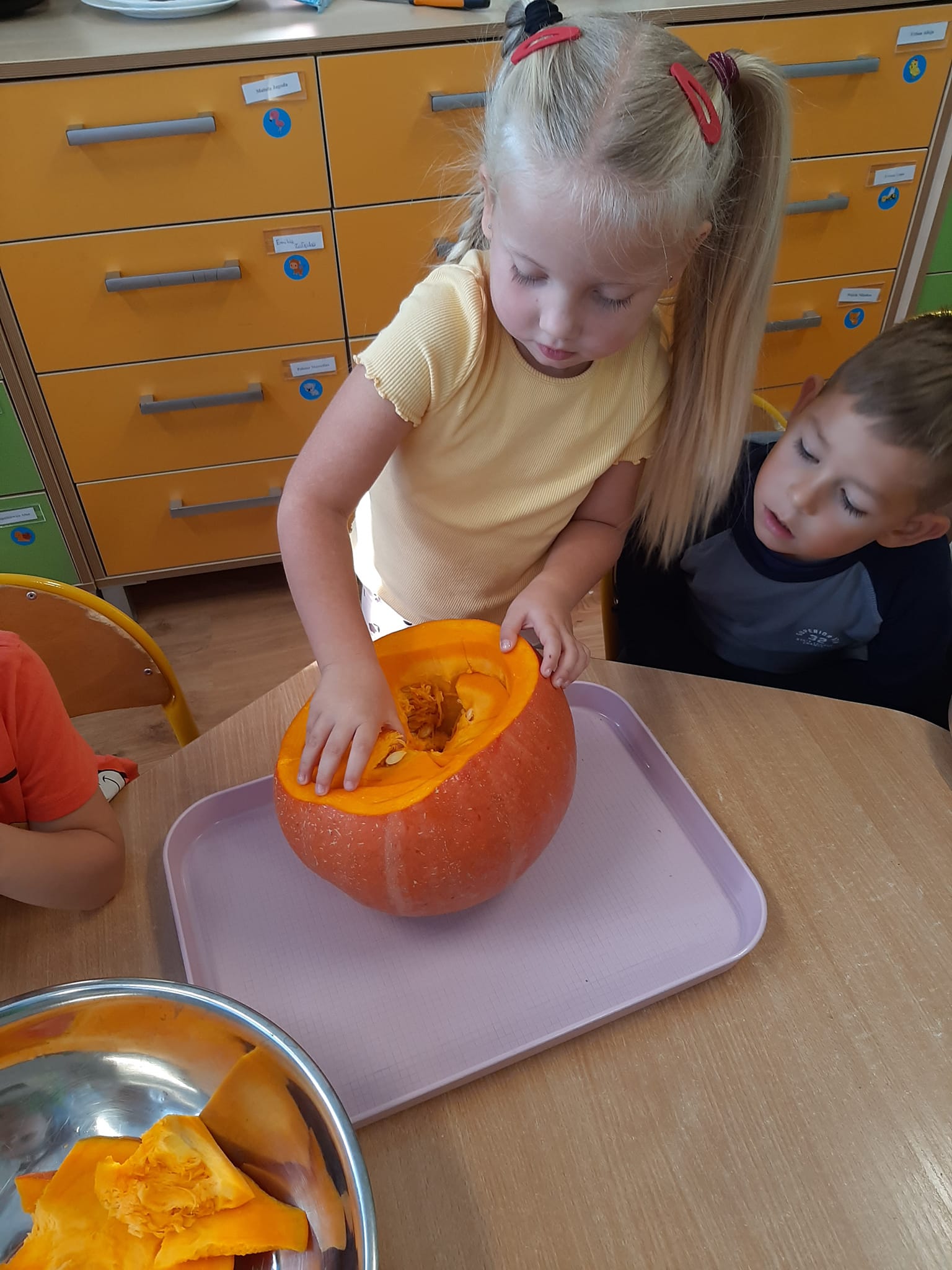 W związku z realizacją IV edycji Projektu Edukacyjnego SensoSmyki, grupa Średniaków przeprowadziła jesienne eksperymenty. Było bardzo ciekawie, kolorowo i jesiennie.