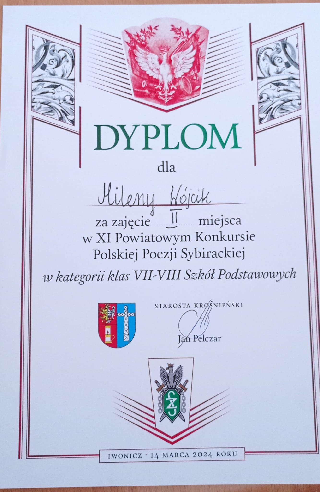 Sukces uczennicy w konkursie powiatowym
