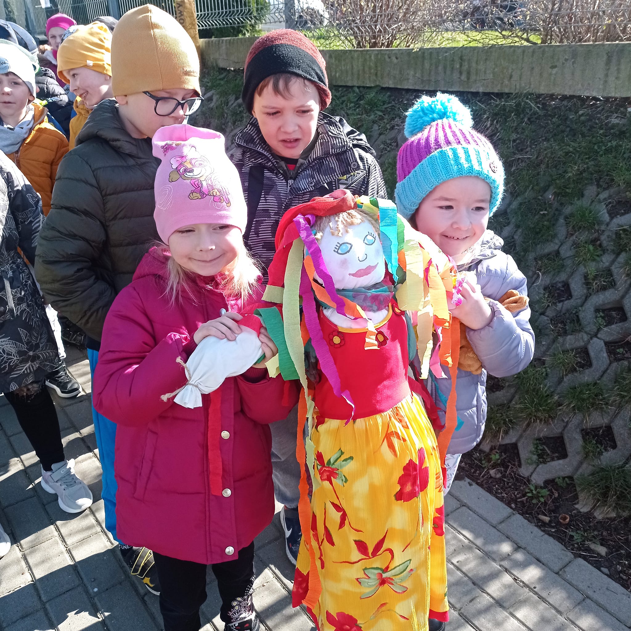 Dziś wszsytkie grupy przedszkolene pożegnały zimę w tradycyjnym korowodzie z Marzanną
