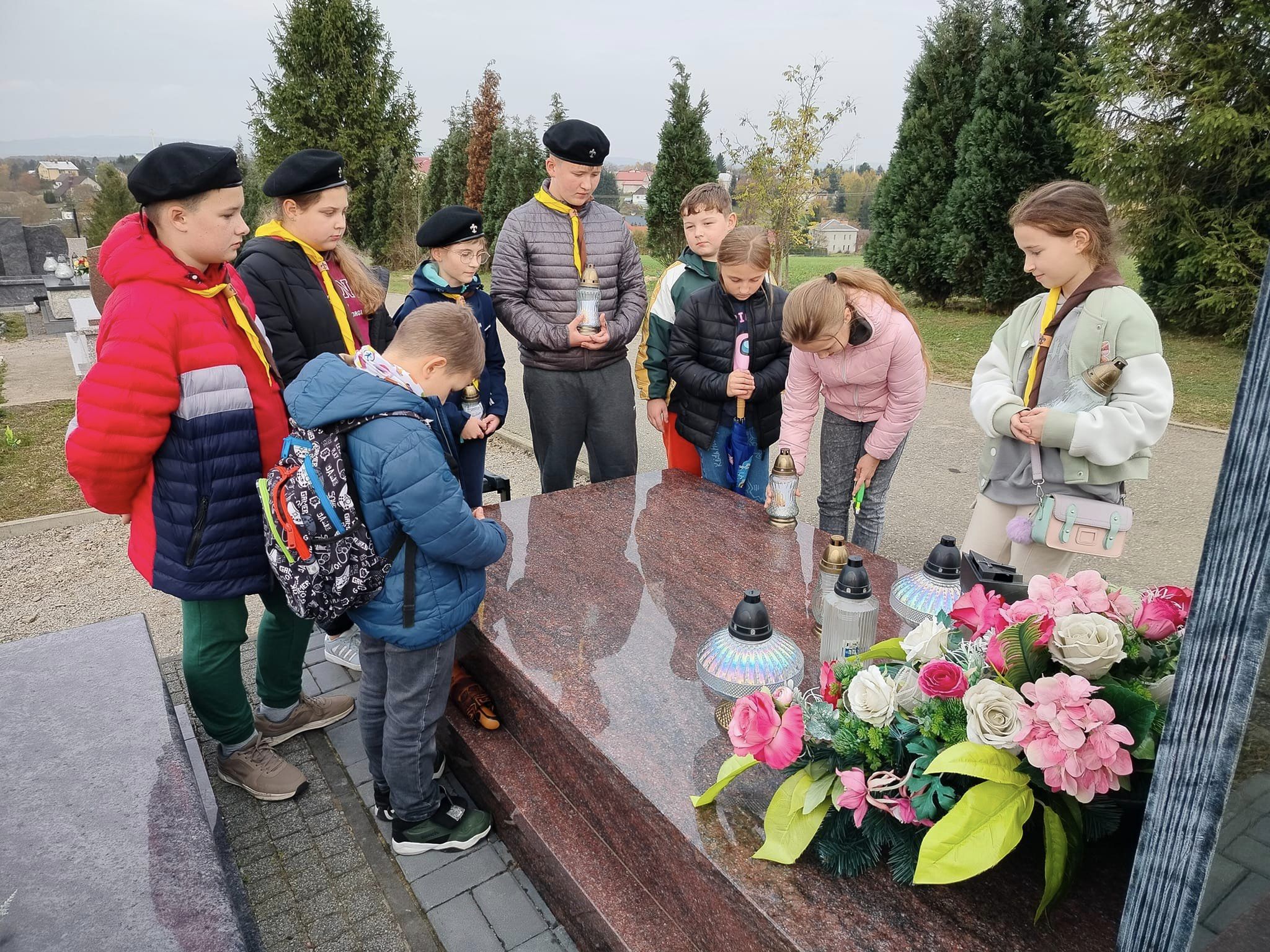Także Harcerze 18 Drużyny Harcerskiej im. S. Czarnieckiego z Łężan zawsze pamiętają o zmarłych! Przed Świętem Zmarłych nasi harcerze porządkowali Pomnik - Krzyż przy głównym skrzyżowaniu Łężan, odwiedzili groby zasłużonych mieszkańców Łężan, patriotów walczących za ojczyznę, zapalili też ćwieczki na grobach nauczycieli i pracowników szkoły. Stali również na Warcie przy pomniku upamiętniającym żołnierzy Armii Krajowej podczas złożenia bohaterom hołdu przy pomniku obok szkoły.
