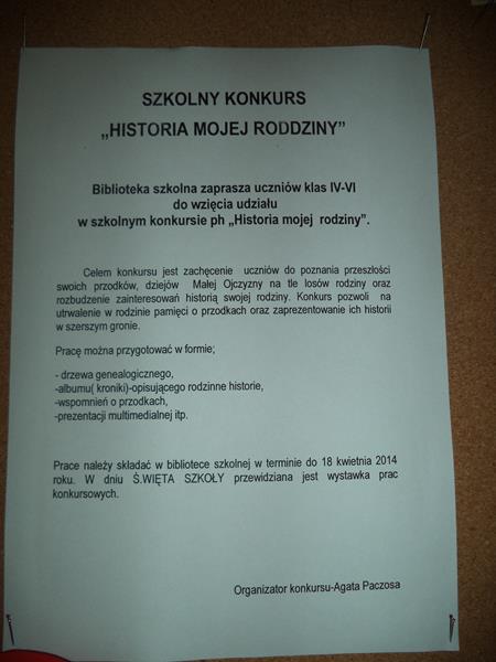 SZKOLNY KONKURS „HISTORIA MOJEJ RODZINY”