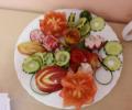 Dnia 18 czerwca 2019 roku dzieci z grupy 3 -4 latków spotkały się z panią Bernadetą Muroń, która pokazała im jak wycinać piękne dekoracje z warzyw i owoców .Dzieci z zachwytem obserwowały wykonywane przez panią czynności.Próbowały również wyciętych smakołyków.Następnie pani wycięła i pomalowała farbą pieczątkę z ziemniaka.Dzieci odbijały pieczątki na kartkach wesoło się przy tym...