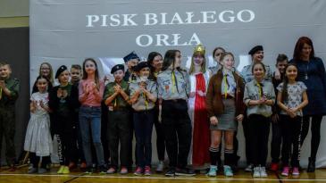 Uczniowie - harcerze z 18 DH z występem "Pisk orła białego" podczas DMB w Korczynie